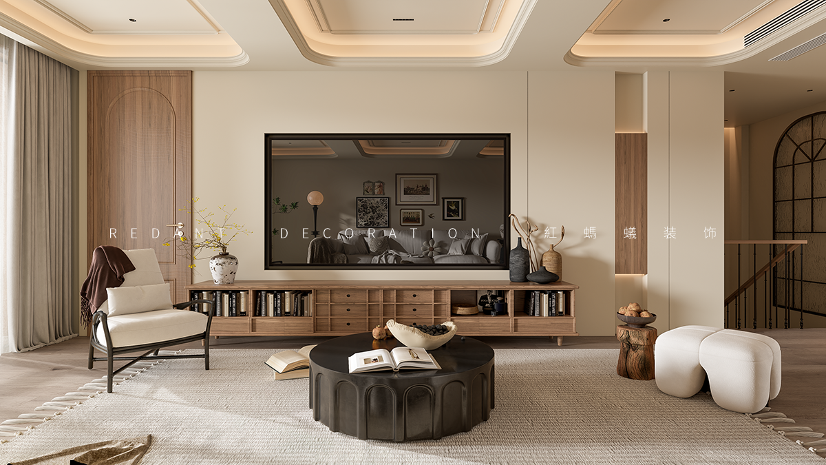 本套空间设计以“自然质朴,复古交融”为理念,营造温暖且富有故事感的居住环境。