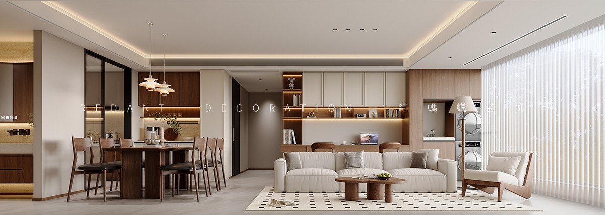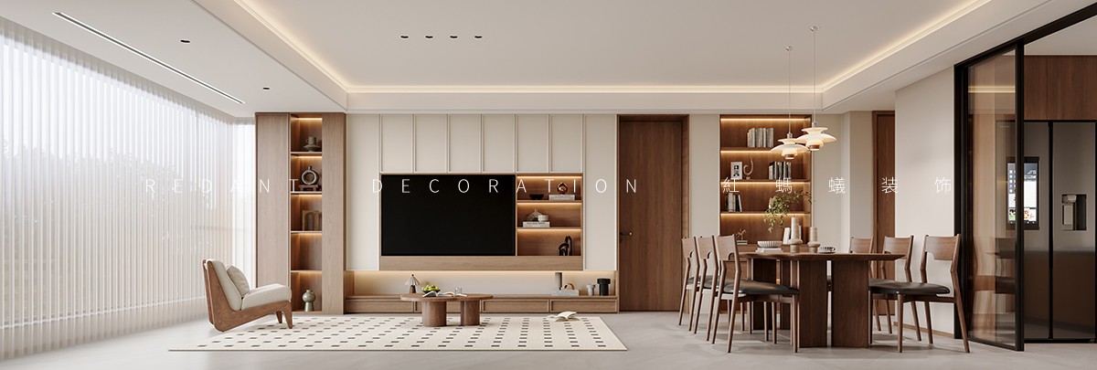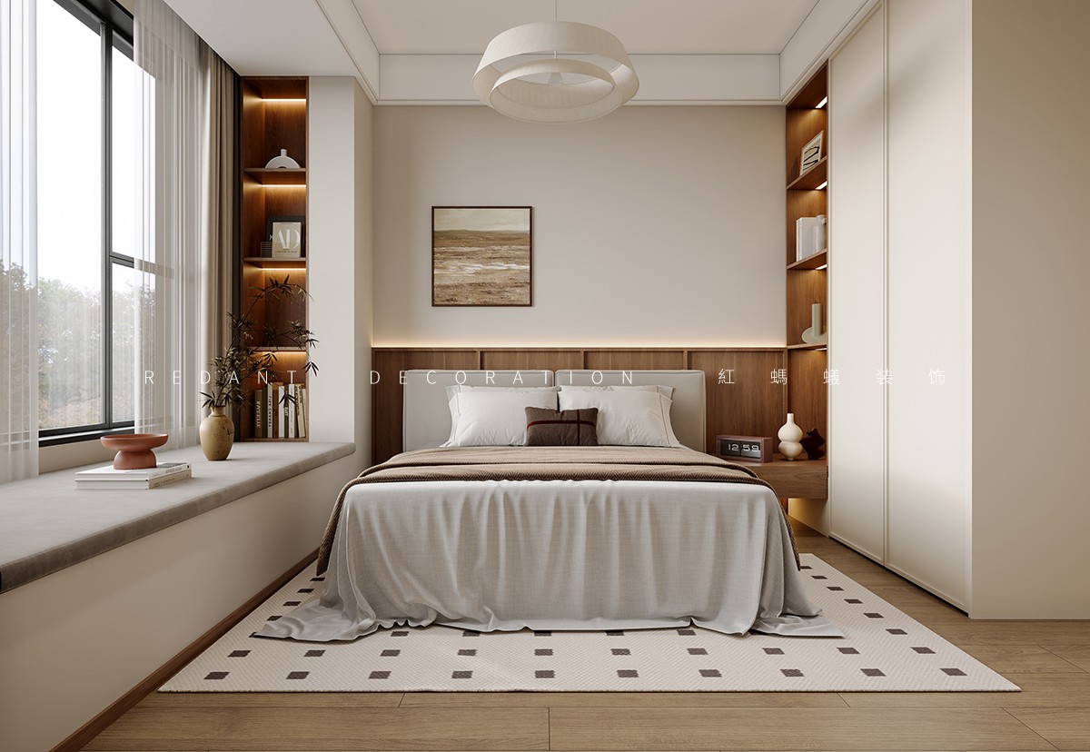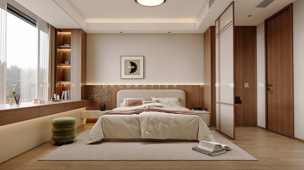 本项目以「温润共生,简雅有度」为核心理念,打造三室户型原木风家居空间。空间以暖白为基底,搭配浅胡桃木饰面与奶咖软装,融合木饰面、微水泥等自然材质,平衡简约与温度。卧室延续温润基调,主卧设休闲飘窗,次卧以实用收纳为主,细节处尽显松弛治愈的当代家居质感。